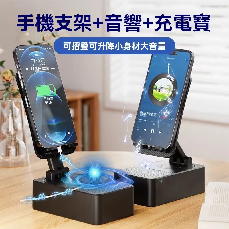 5分鐘前一機多用超省心懶人福音 三合一旋轉手機支架+快充行動電源+藍牙音響隨身多功能數碼神器 - 【品質之選】1入組-NT$998